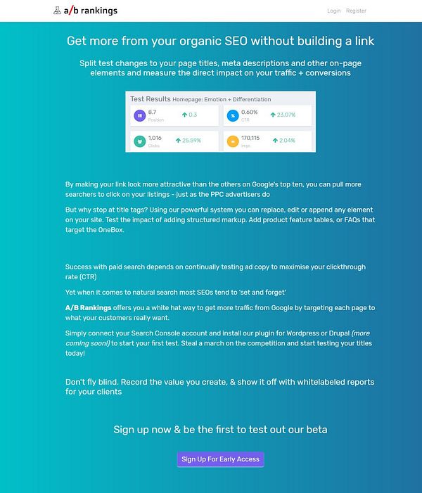 create coming soon lander for abrankings.com with opt ins #ctr
