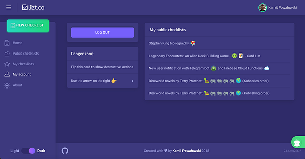 public checklists on account page #lizt
