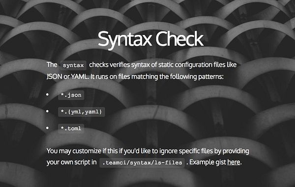 create syntax check docs page #teamci
