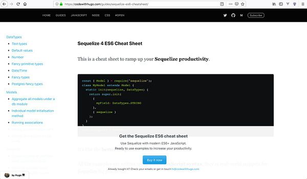 write up and package sequelize cheat sheet #codewithhugo