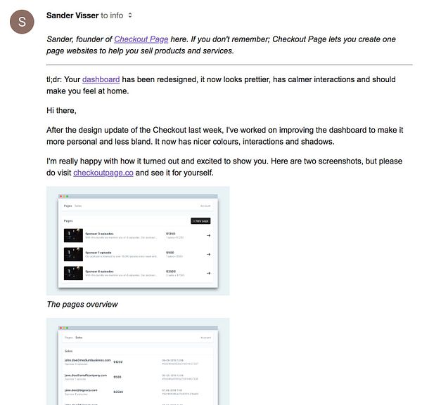 send dashboard redesign email update #checkoutpage