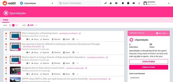 created subreddit for #sportstechjobs