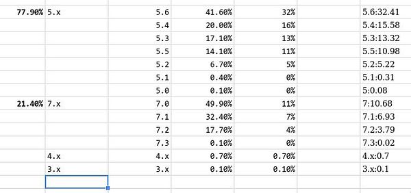 make spreadsheet to find % for each version #upgradeyourphp