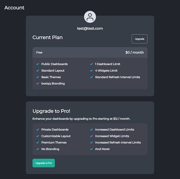 account page for users on free plan #dashful