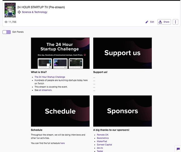 get twitch panels ready 4 the big day #24hrstartup