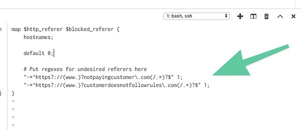 Implement referrer banning in nginx so server does not get loads of customers that test their "big" websites (